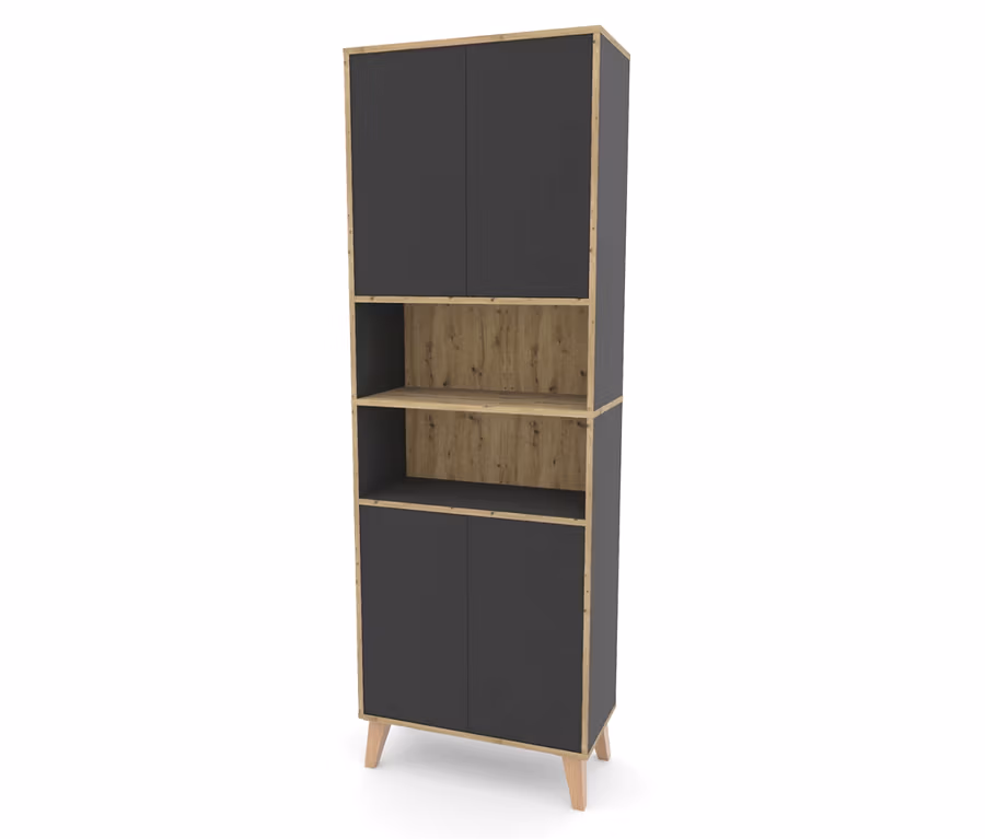 Roba Hochschrank »Morena« mit 4 Türen und 2 offenen Fächern, grau mit Artisan-Eiche