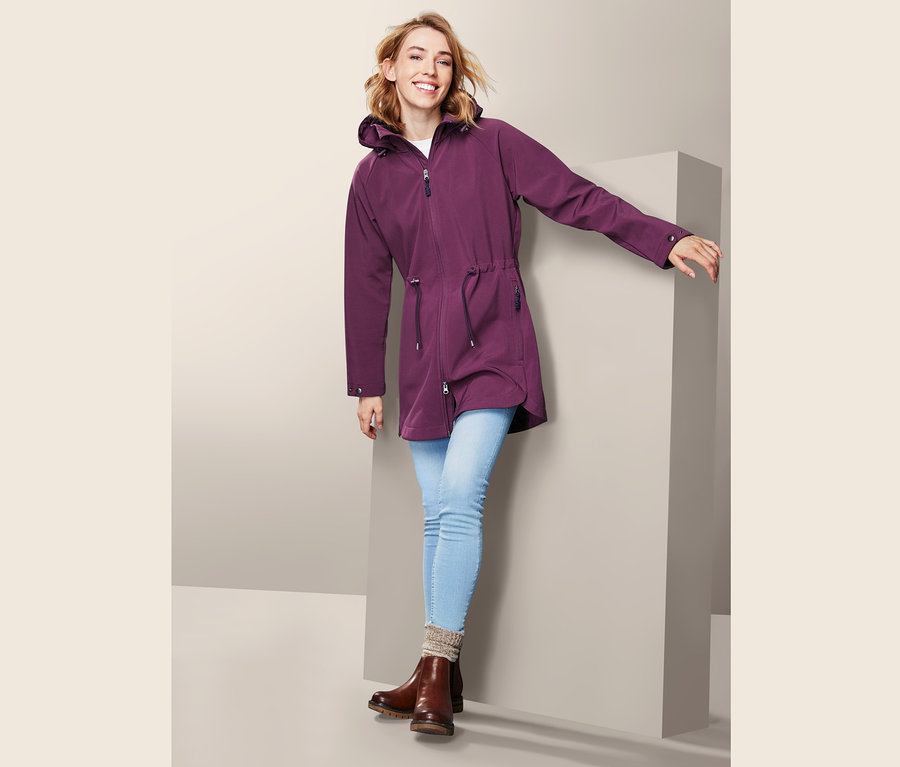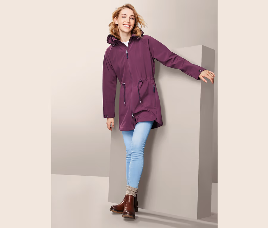 Der Vorteil von Softshelljacken: Es handelt sich bei ihnen um eine Art Kombination aus Fleecejacke und Regenjacke, daher sind sie sehr leicht und richtig bequem zu tragen. Dieser Softshellmantel für Frauen ist ein verlässlicher Begleiter für graue und raue Tage: Seine winddichten, wasserabweisenden und atmungsaktiven Eigenschaften verdankt er seinem Clima Protection System und der umweltschonenden evoPel-Imprägnierung. Einer Wassersäule von 3.000 mm hält das Obermaterial insgesamt stand.