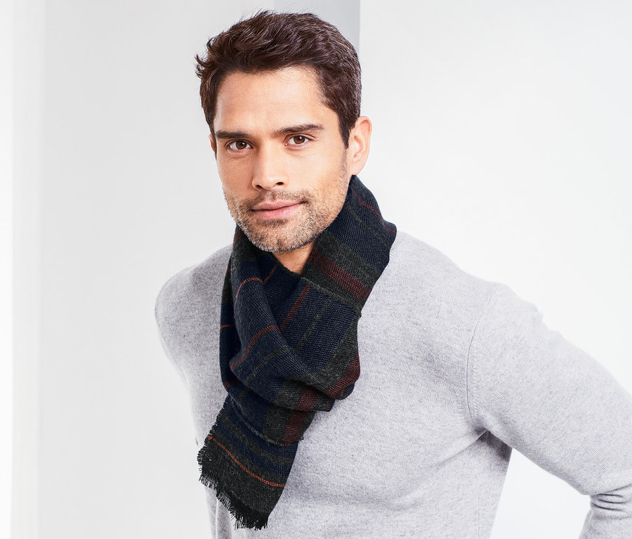 Wenn's draußen so richtig kalt wird, ist dieser Herren-Webschal einfach unverzichtbar. Er ist besonders weich und wärmend … und macht auch optisch einiges her. Denn mit seinen kurzen Fransen und der abwechslungsreichen Optik ist der Schal das ideale Accessoire. Dank unifarbener und gestreifter Seite lässt er sich zu jedem Look kombinieren.