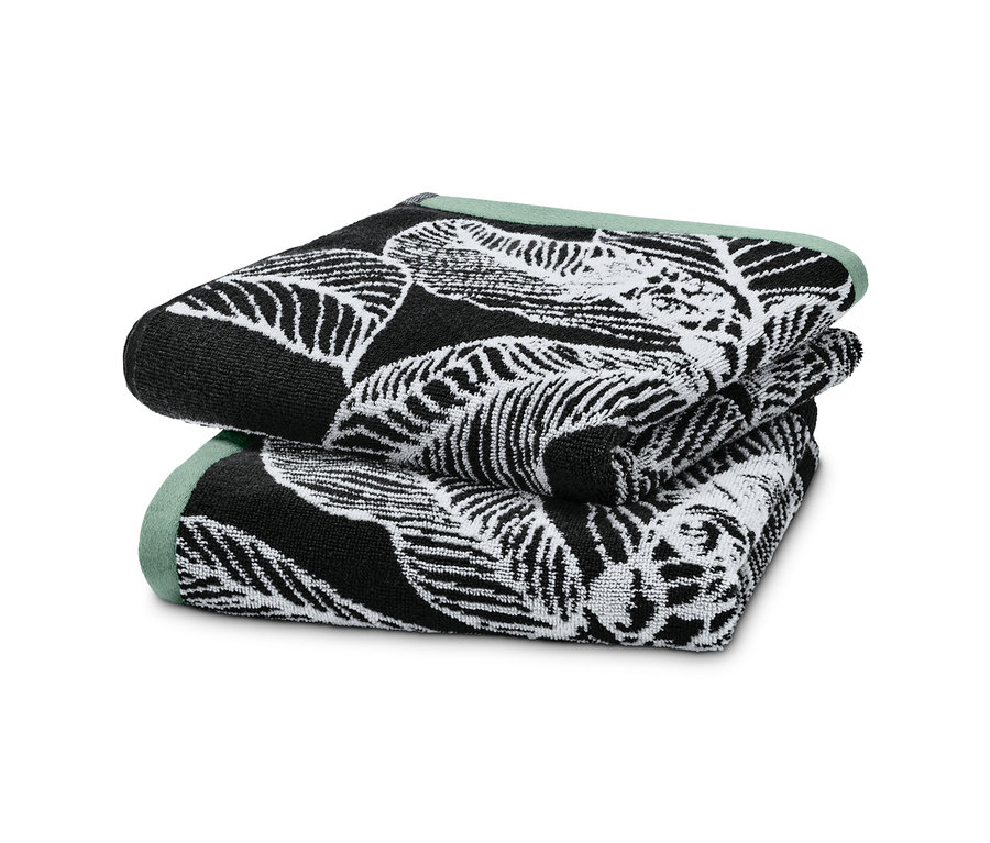 - Schwarz mit weißem Blumen-Alloverprint und grüner Borte