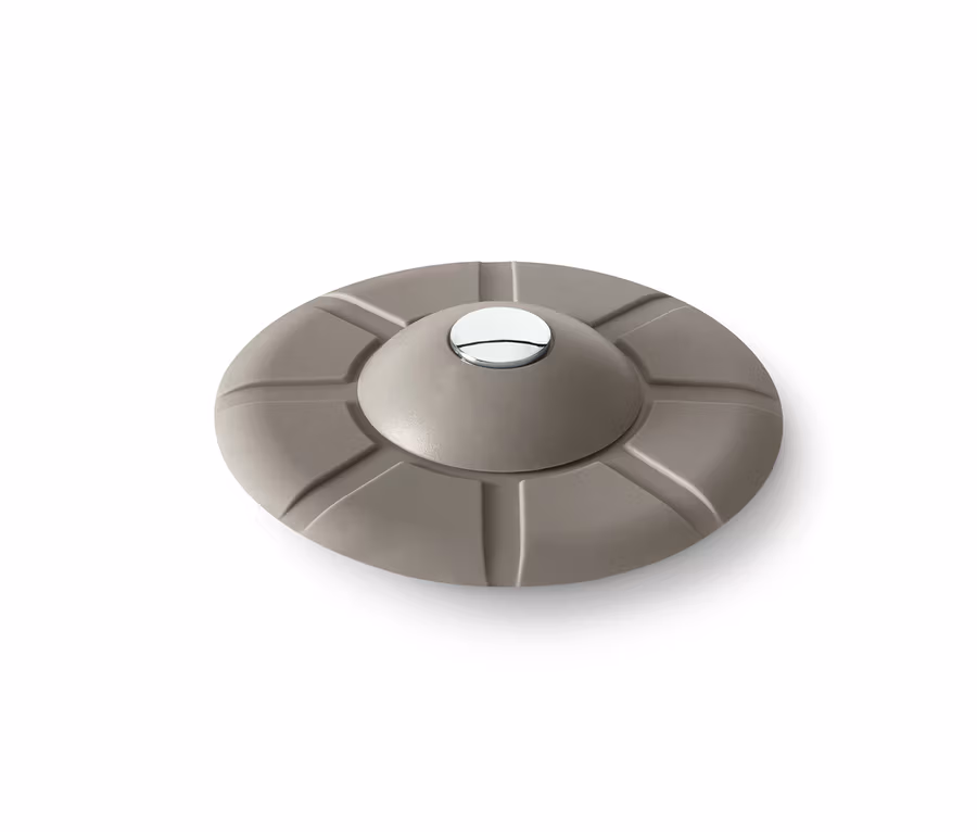 - Abfluss öffnen durch Drücken in der Mitte, Abfluss schließen durch Herunterdrücken des Randes
