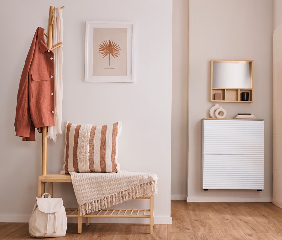 - Schuhaufbewahrung, Garderobe und Sitzgelegenheit in einem