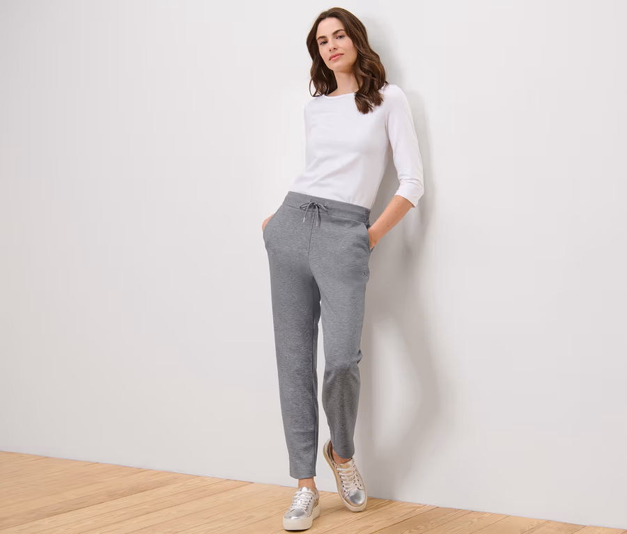 - Damenhose mit 2 Eingrifftaschen vorne und 2 Zier-Leistentaschen auf der Rückseite