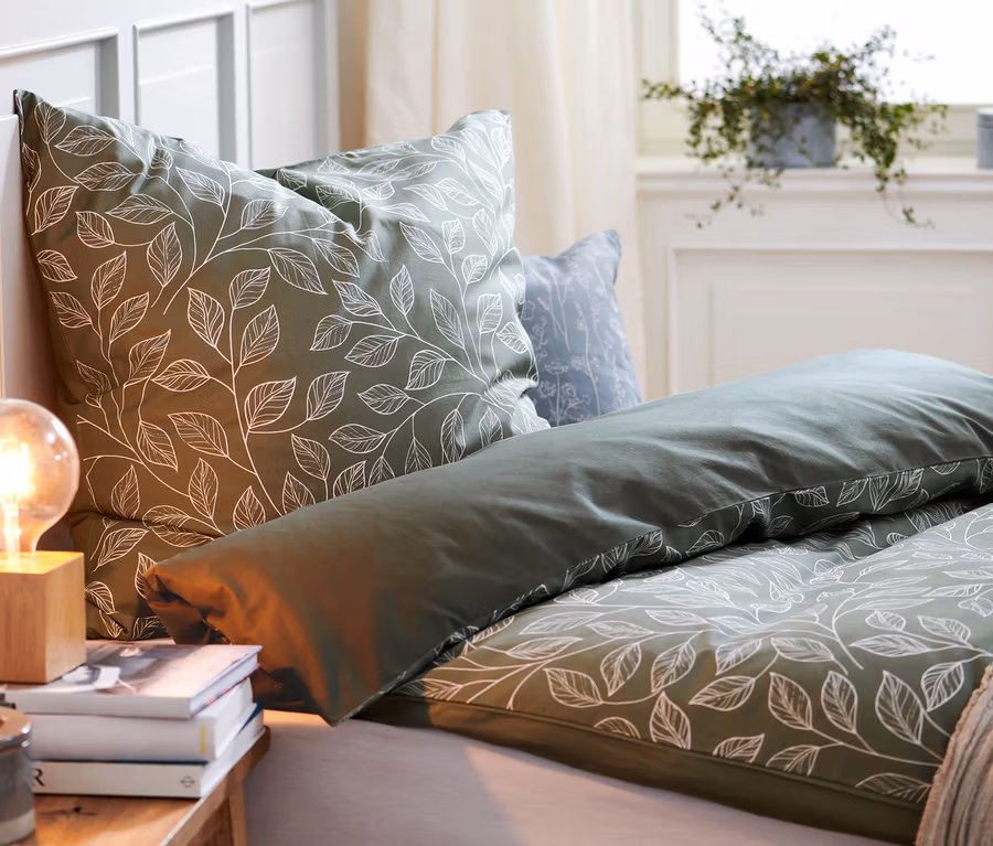 - Wendebettwäsche mit zartem Blätter-Alloverprint
