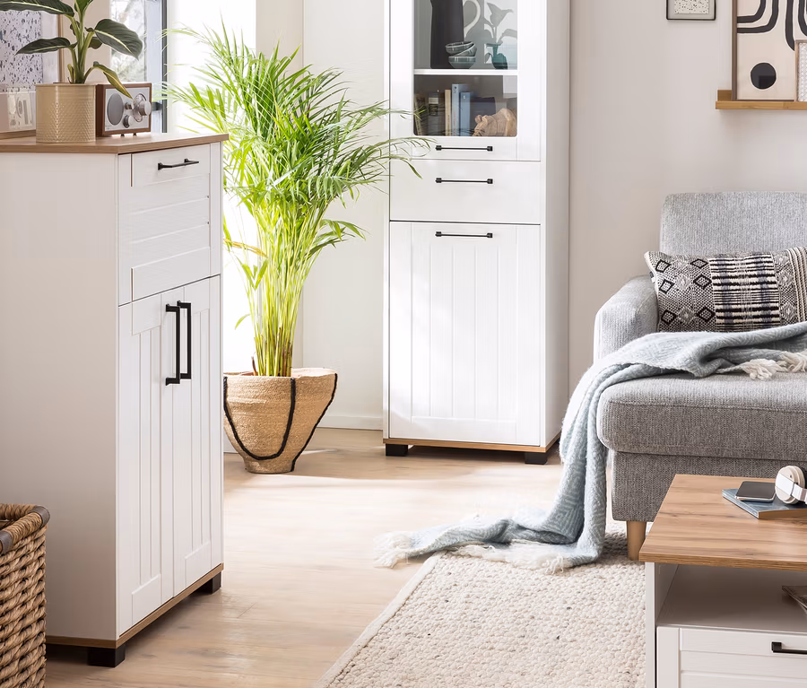 - Matt weiß mit Eiche-Landhaus-Dekor