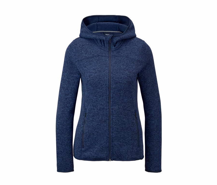 Ob milder Herbst oder strenger Winter – diese Strickfleecejacke mit Kapuze ist ein echtes Multitalent, was die Wärmedämmung beim Training angeht. Trotz ihres weichen und wärmenden Materials ist die Fleecejacke atmungsaktiv und sorgt mit der angerauten Innenseite für eine optimale Körpertemperatur. Der hochschließende Kragen mit Kapuze ist gerade bei niedrigen Temperaturen ideal geeignet, um sich vor kaltem Wind zu schützen. Und auch der Reißverschluss hat einen Extraschutz für das Kinn. Taschentücher, Lippenpflege, Schlüssel und Co. sind schnell und einfach in den beiden seitlichen Reißverschlusstaschen der Strickjacke verstaut. Und auch optisch ist der sportliche Überzieher für Damen ein echtes Highlight, der jedes Sportoutfit komplettiert.