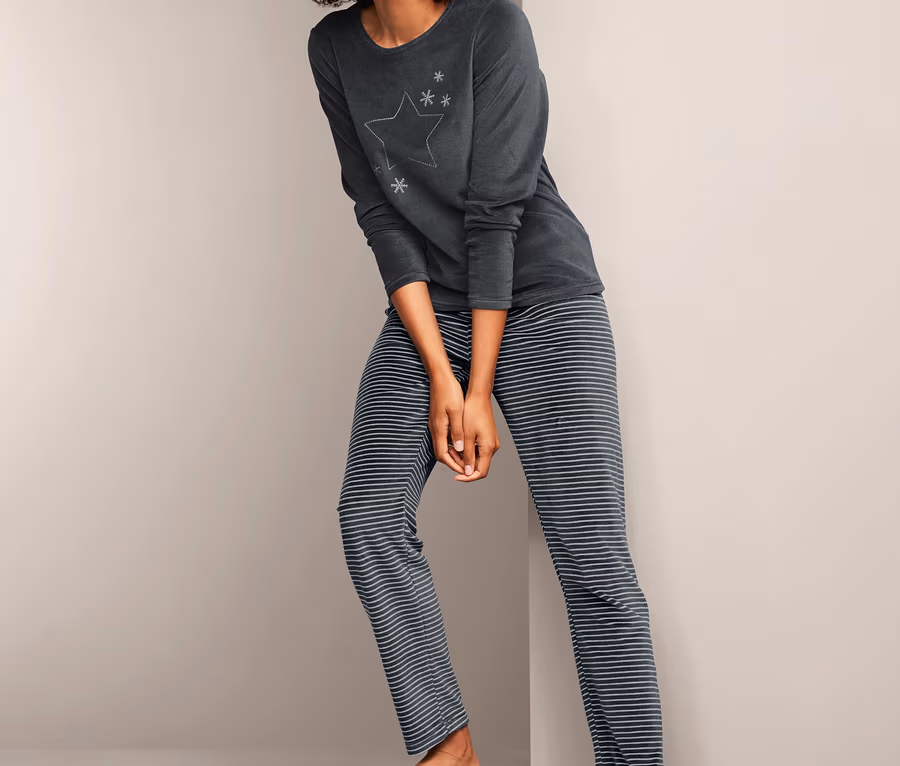 - Oberteil mit gesticktem Stern- und Schneeflocken-Motiv, Rundhalsausschnitt und langen Ärmeln