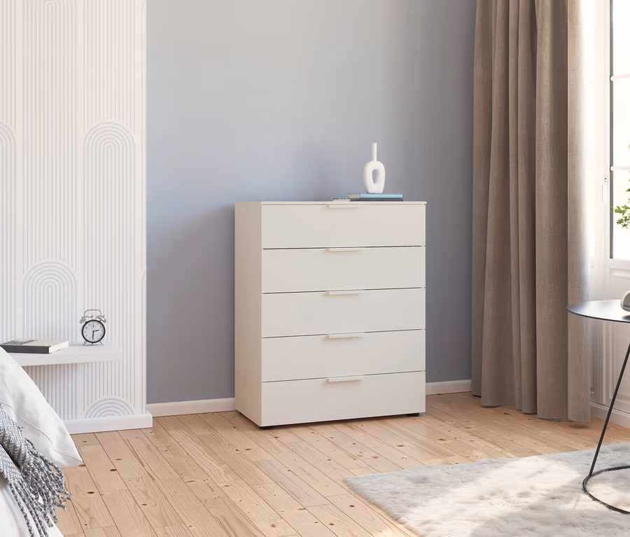 - Hohe Kommode mit 5 geräumigen Schubladen bietet Stauraum auf kleiner Stellfläche