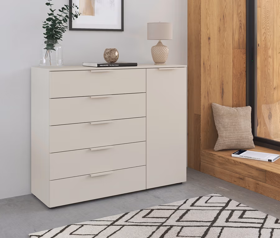 - Moderne Kommode mit 5 geräumigen Schubladen und 1 Tür bietet viel Stauraum