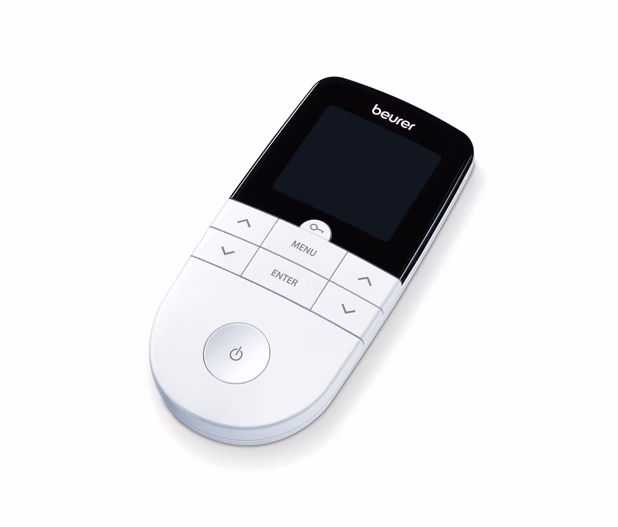 Das Beurer-Digital-TENS/EMS EM 49 ist ein multifunktionales Gerät mit drei Funktionen: TENS – die „Transkutane Elektrische Nervenstimulation“ – dient zur medikamenten- und nebenwirkungsfreien Schmerzlinderung, die „Elektrische Muskel-Stimulation“ EMS kommt bei Muskeltraining und -regeneration zum Einsatz und die Massage-Funktion sorgt für Entspannung und Wohlbefinden.
