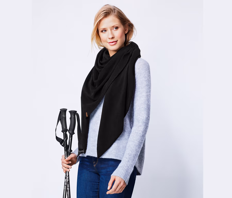 Denn dieser Schal aus Fleece ist besonders weich, leicht und dabei so schön wärmend. Die Dreiecksform mit Kettelnaht und das Detail in Lederoptik machen aus dem Schal zudem ein modisches Lieblingsstück, das zu allem passt.