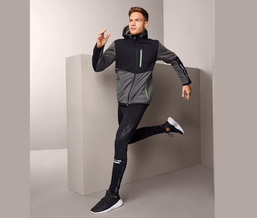 - Kombination aus winddichter Web- und warmer Fleece-Funktionsware