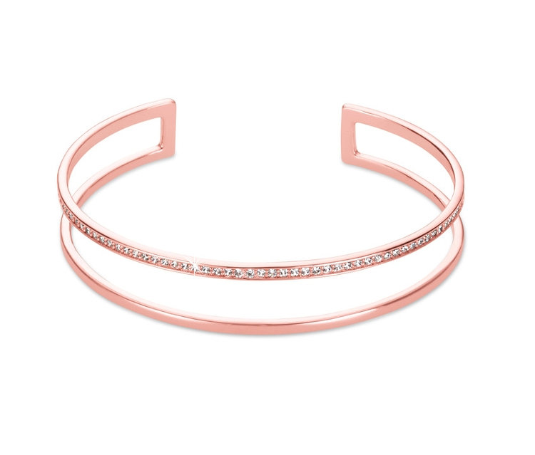 Dieser Armreif lässt Damenherzen höherschlagen: Dank zwei zierlicher Spangen, die sich elegant um den Arm legen, wirkt das Schmuckstück besonders modern. Eine Reihe funkelnder Zirkonia sorgt für ein zusätzliches Strahlen, währen die Rosévergoldung des Armreifs die Spangen harmonisch verbindet. Besonders schön: Die Einheitsgröße des Armreifs sorgt dafür, dass er an jeden Arm passt.