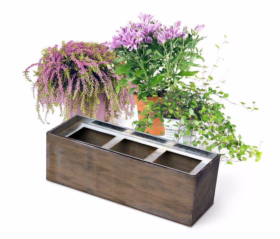 - Inkl. 3 Pflanzen und Holzblumenkasten