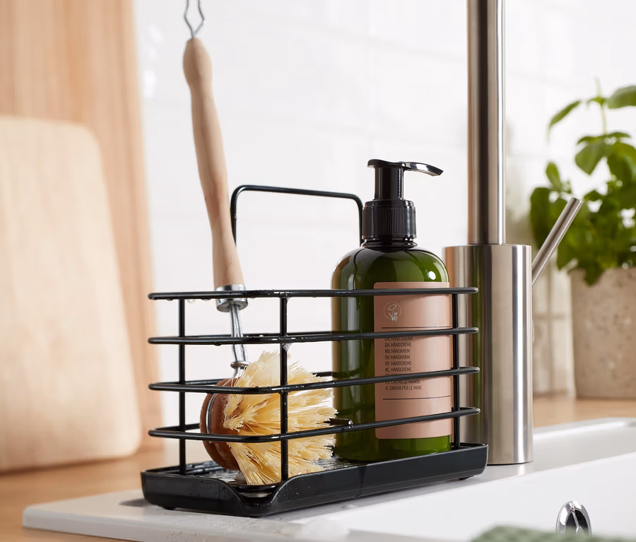 - Platzsparendes Aufbewahren von Spülbürste, Schwamm und Reinigungstuch