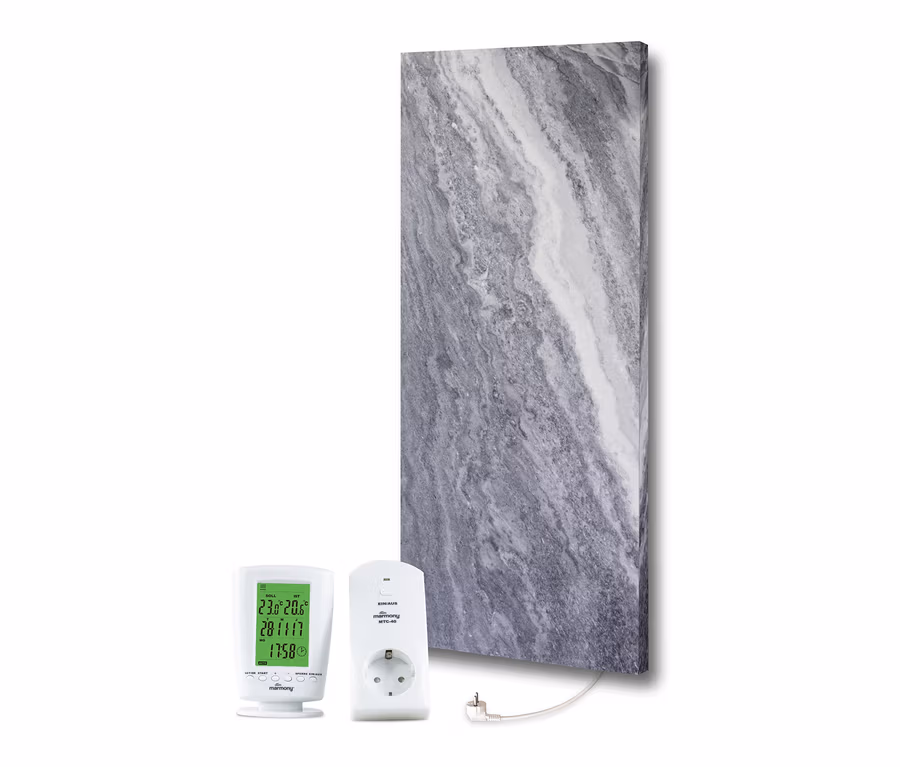 Stilvoller kann man zu Hause kaum für gutes Klima sorgen: Der Marmony®-Infrarotheizkörper aus echtem Carrara-Marmor lässt sich wie ein Bild ohne Installation einfach aufhängen. Er sorgt durch eine gleichmäßige Temperaturverteilung mit 800 Watt Heizleistung in Räumen von bis zu 25 m² für eine wohltuende Infrarotwärme sowie ein gesundes Klima mit ausgewogener Luftfeuchtigkeit.