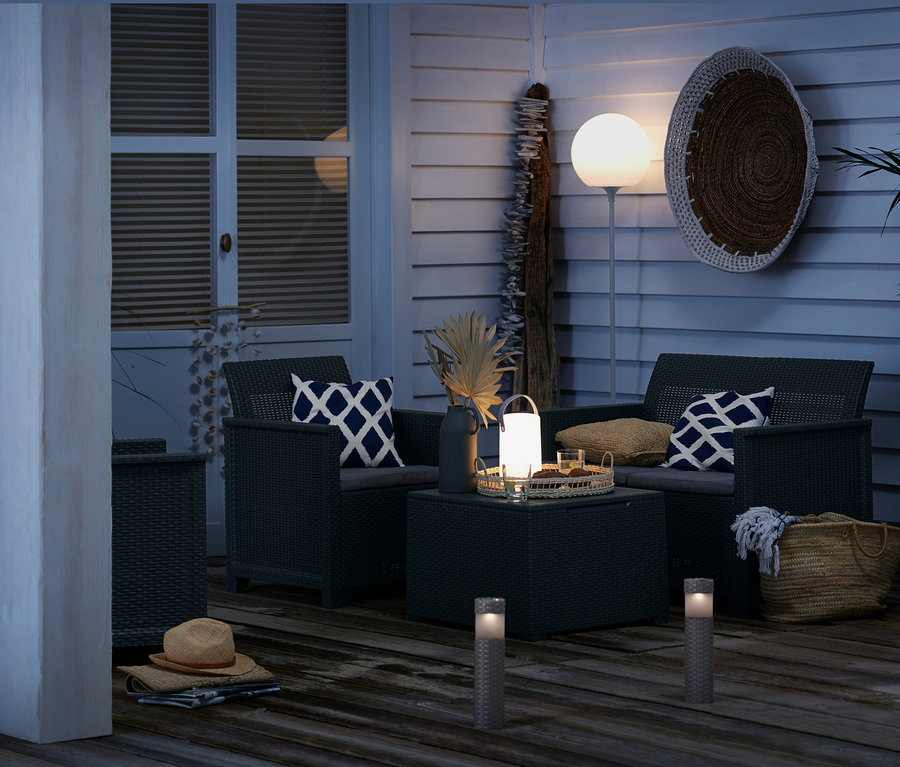 - Kunststoff in Geflechtoptik – UV- und witterungsbeständig, schmutz- und wasserabweisend