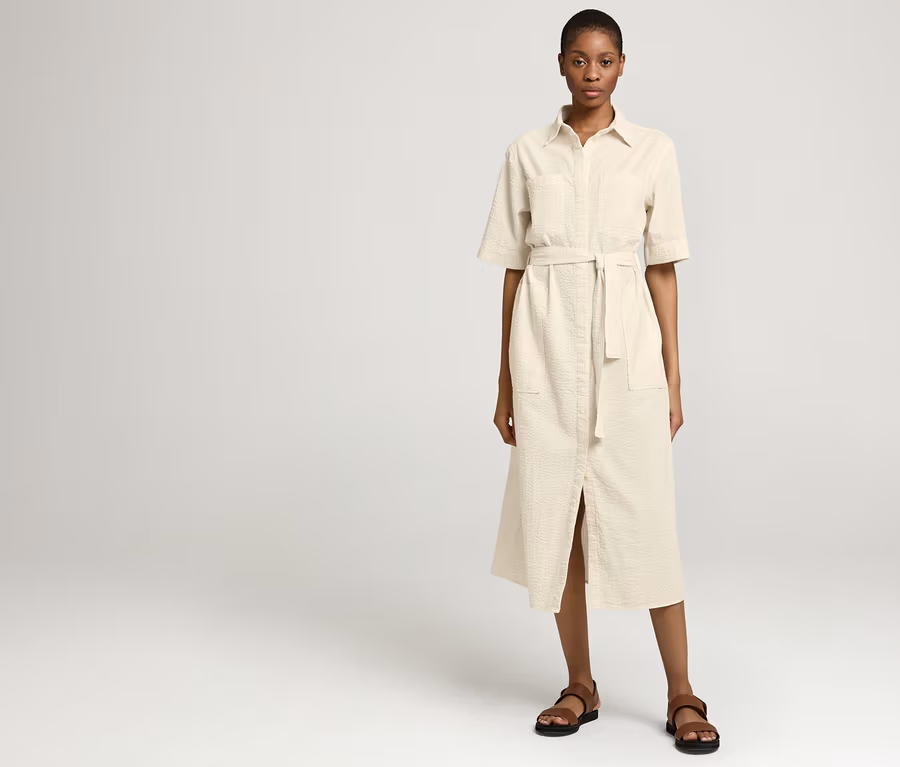 - Ob über Chinos lässig aufgeknöpft oder elegant auf Taille gebracht – unser Crinkle-Kleid ist ein Allday-Liebling. In hochwertiger Seersucker-Qualität aus ökologisch angebauter Baumwolle, die im clean designten Hemdblusen-Stil weich fällt und sich mit aufgesetzten Taschen und einem abnehmbaren Bindegürtel unkompliziert stylen lässt.