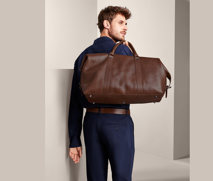 - Kompakte Reisetasche aus chromfrei gegerbtem Leder mit Antik-Finish