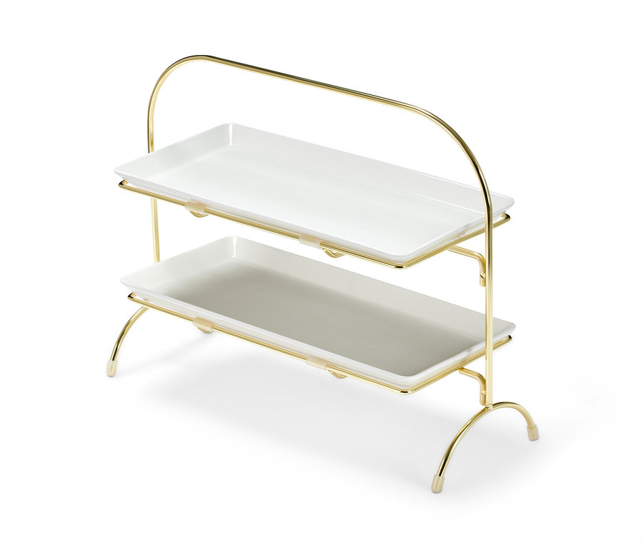 - 2-stufiges Metallgestell mit Servierplatten aus hochwertigem Porzellan
