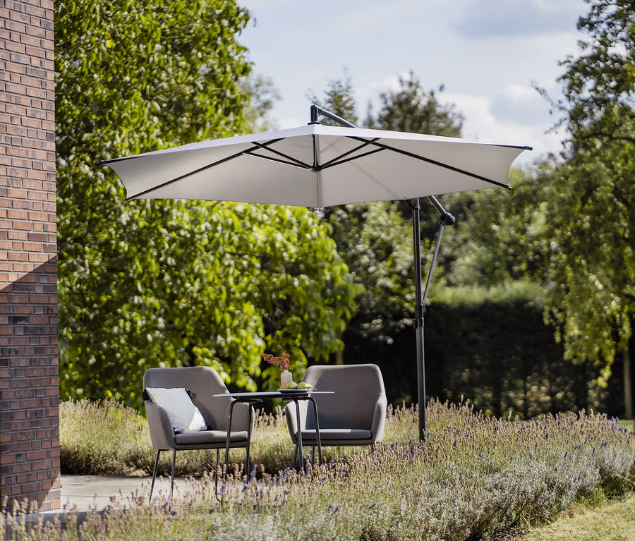 - Runder, um 360° schwenkbarer Ampelschirm für einen optimalen Schattenwurf zu jeder Zeit