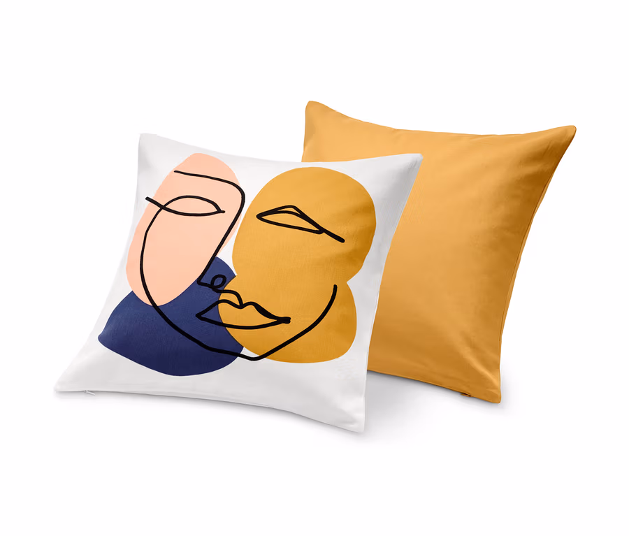 - Beide Kissenhüllen mit unifarbener Rückseite