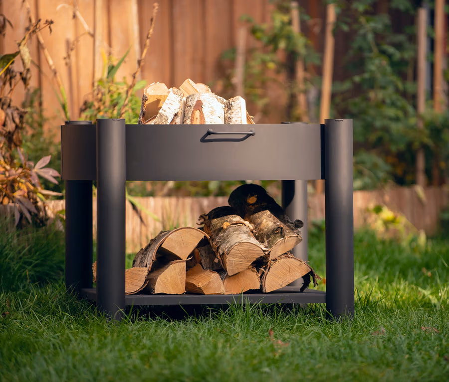 • Eingearbeitete Hitzeschutzplatte zwischen Feuerschale und Untergrund, kann auch für Holzvorrat genutzt werden