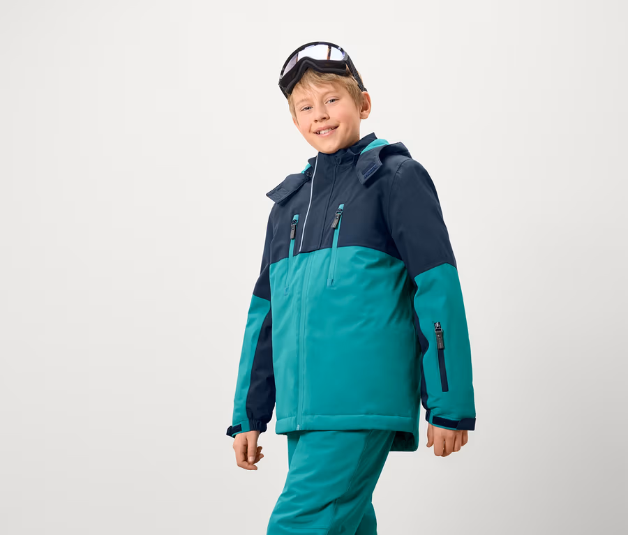 - Abnehmbarer, wasserdichter Schneefang innen mit rutschhemmender Gummierung und Druckknöpfen zur Weitenregulierung