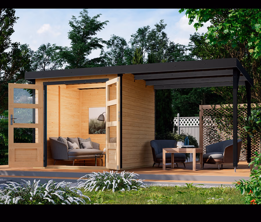 Karibu Gerätehaus »Venus A« mit Metalldach und Anbaudach, 19 mm, naturfarben