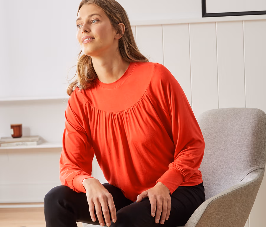 • Ausschnitt des Oberteils mit Einsatz und Raffung