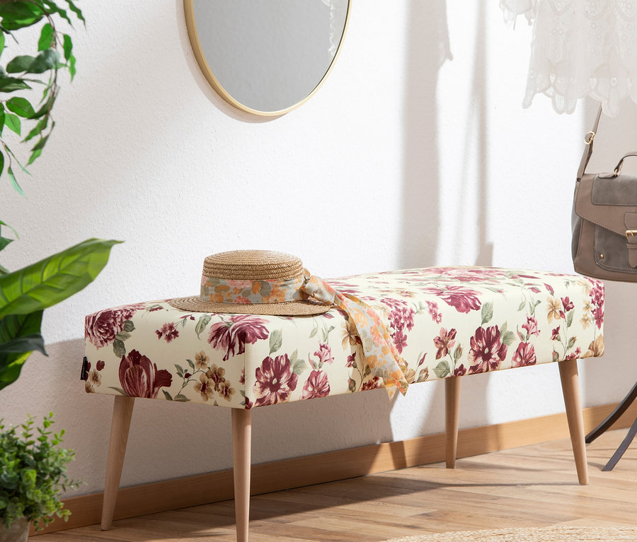 - Das florale Design mit hellem Grundton harmoniert perfekt mit dem Retro-Style der Bank, die bunten Blüten sorgen für frische Akzente