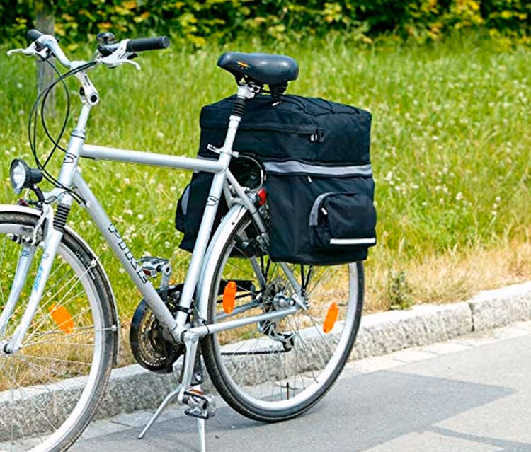 - Mit integrierten Gurten zur sicheren Befestigung am Gepäckträger