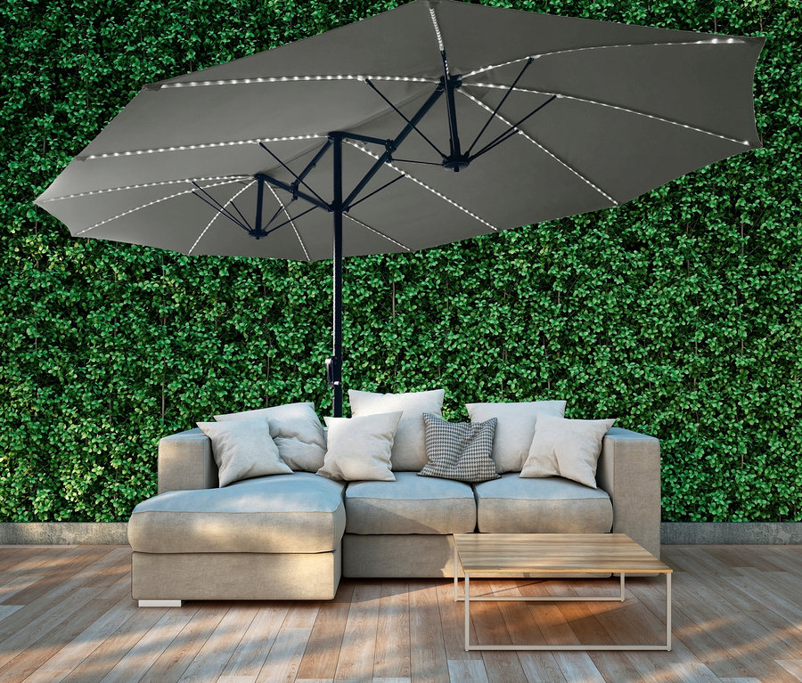 LECO Doppel-Sonnenschirm* mit LED-Beleuchtung, oval, ca. 270 x 460 cm, anthrazit