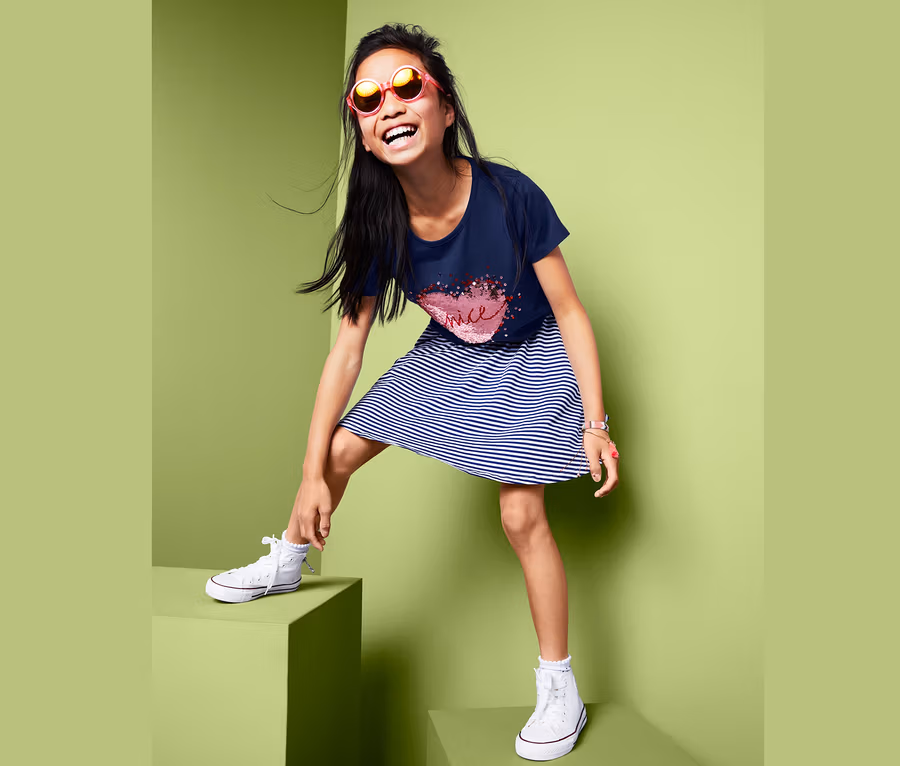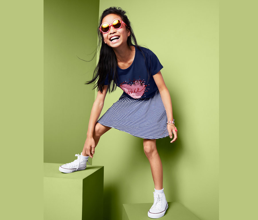 Mit einem Handstreich den Look wechseln? Kein Wunder, dass Kinder Shirts mit Wendepailletten lieben. Und wenn es dann auch noch so bequem ist wie das hier – umso besser.