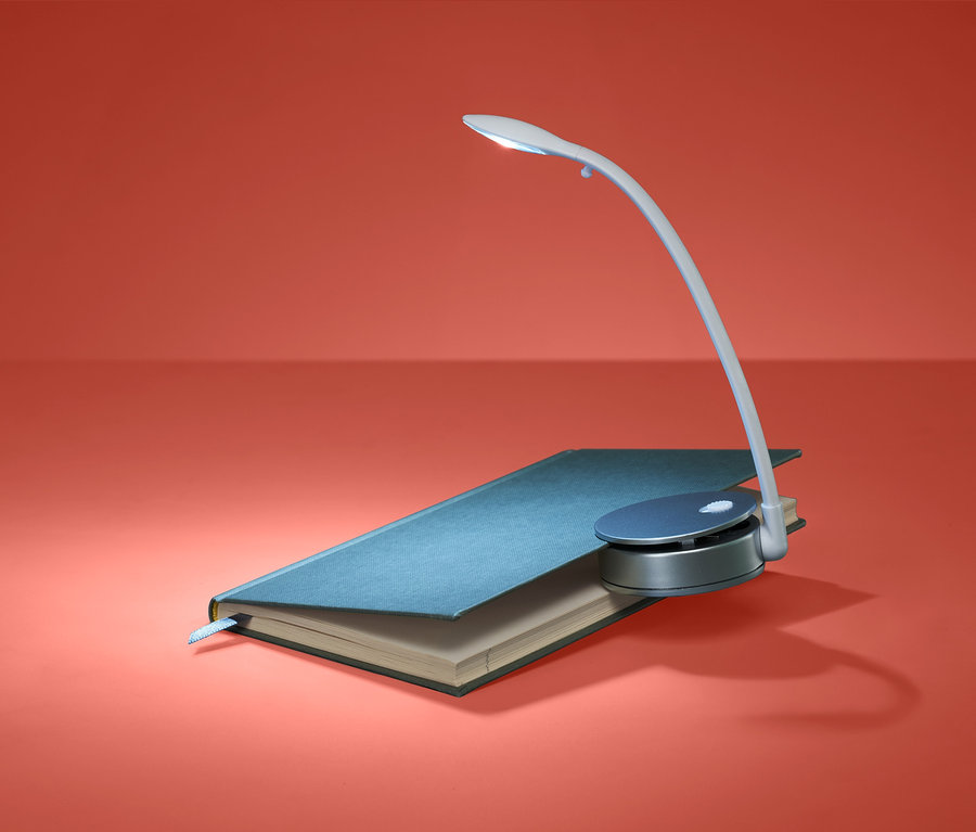 Der biegsame Leuchtenarm lässt sich beim Lesen je nach Bedarf ausrichten und bei Nichtgebrauch kann man ihn einfach um die Stellfläche rollen und die Leuchte platzsparend verstauen.