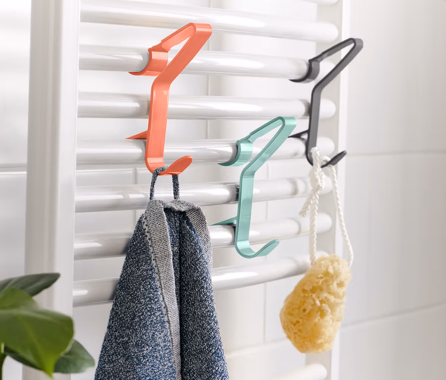 - Einfache Befestigung – Haken werden einfach zwischen den Stangen des Handtuchwärmers eingehängt