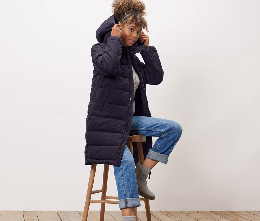 - Hochschließender Kragen mit Kapuze und 2-Wege-Reißverschluss mit Kinnschutz