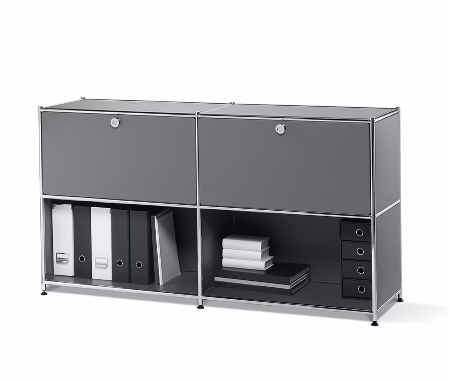 Metall-Sideboard mit 2 versetzbaren Klappenfächern