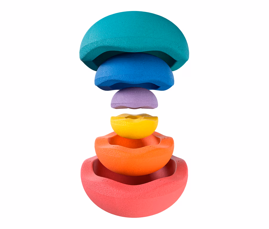- Als Regenbogenskulptur stapelbar oder angelehnt an die Matroschka ineinander steckbar