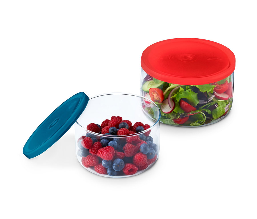 Ein Duo für so manche Delikatesse: Man könnte die beiden Glas-Auflaufformen als wahre Multitalente in der Küche bezeichnen – eignen sie sich doch zum Servieren, Frischhalten, Einfrieren, Garen und Erhitzen. Ohne Deckel sind sie sogar mikrowellengeeignet und backofengeeignet bis 180 °C. Da kommen einem doch direkt ein paar köstliche Einfälle, was man darin alles zubereiten könnte. Von Crumble über Gratin bis hin zum Obstsalat ist jede Leibspeise möglich. Dafür bieten die beiden Auflaufformen mit etwa 800 und 1.500 Millilitern Füllmenge ausreichend Platz. Nach dem Gebrauch sind sie durch ihre zwei unterschiedlichen Größen praktisch ineinander stapelbar. Und wem mal die Ideen ausgehen, dem helfen die beigefügten Rezeptvorschläge sicher lecker weiter.