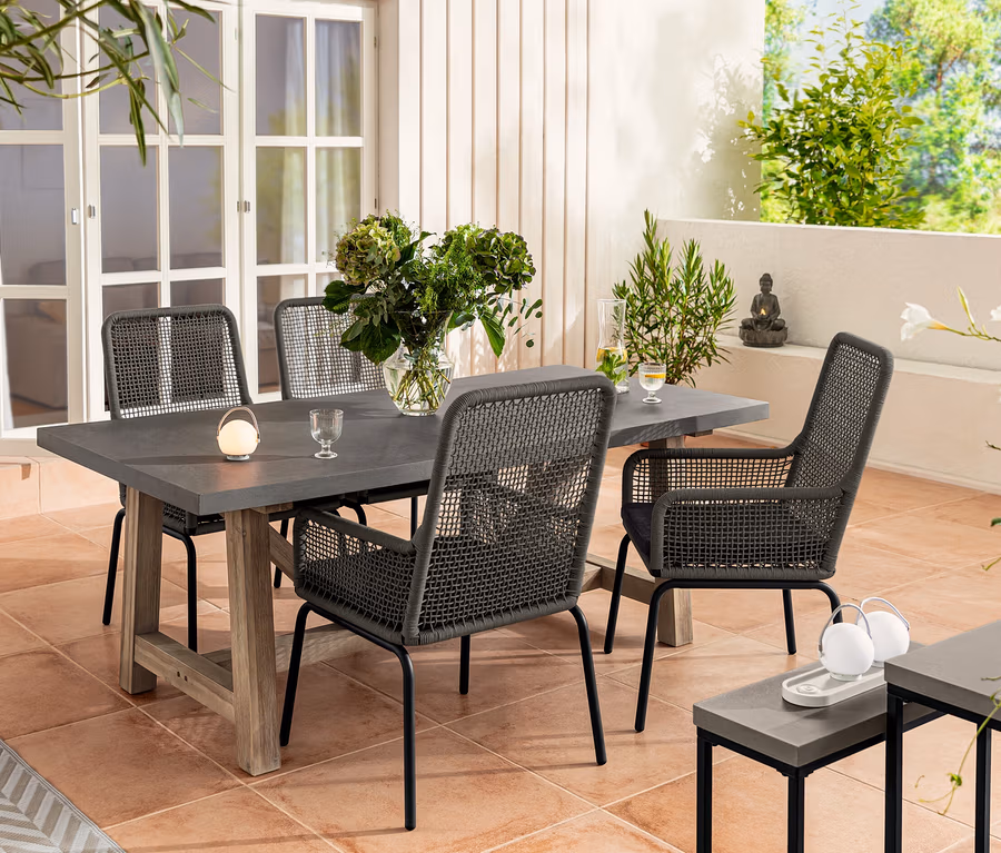 - Sitzschale mit witterungsbeständigem und schnelltrocknendem Textilgeflecht, outdoorgeeignet