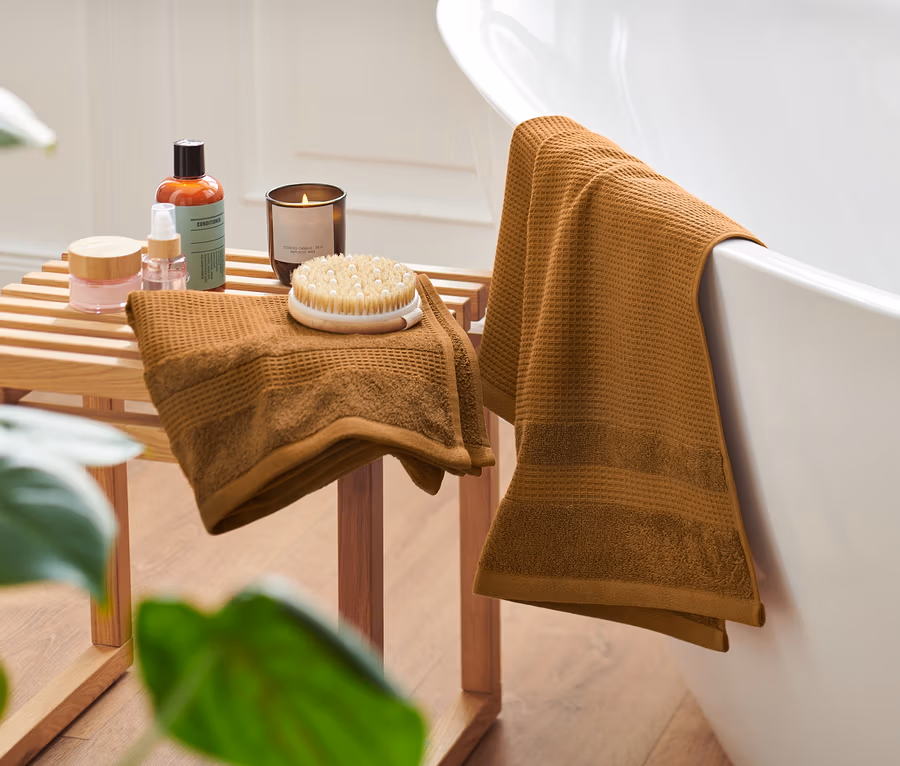 2 Premium-Waffelpiqué-Handtücher, ockerfarben