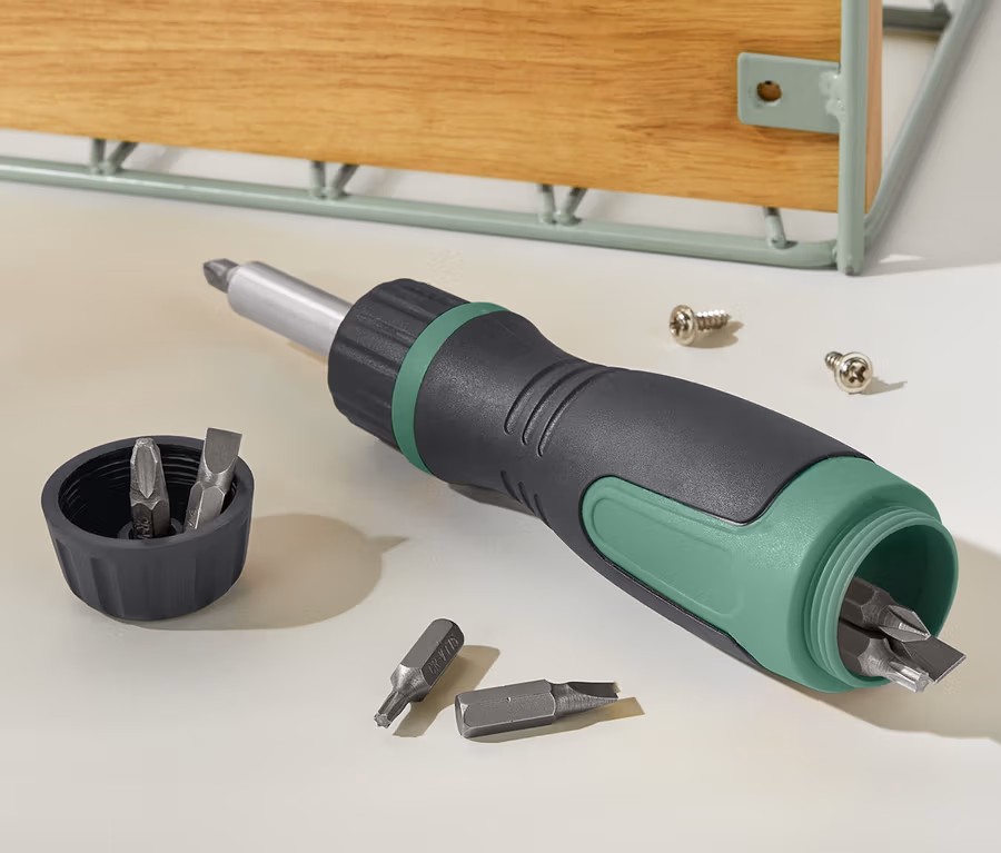 - Bits: 3x Schlitz (5/6/7 mm), 3x Kreuzschlitz/gekreuzt (PH1/ PH2/ PH3), 2x Torx (T15, T20)