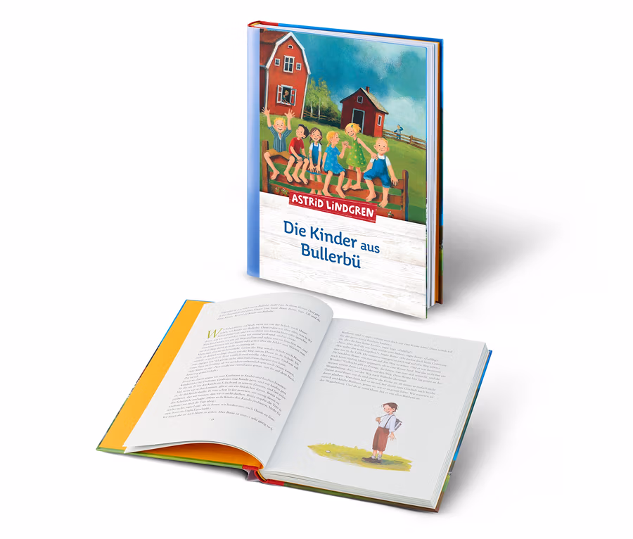 Astrid Lindgrens berühmte Kinderklassiker in einer Gesamtausgabe mit den Einzelbänden „Wir Kinder aus Bullerbü“, „Mehr von uns Kindern aus Bullerbü“ und „Immer lustig in Bullerbü“.