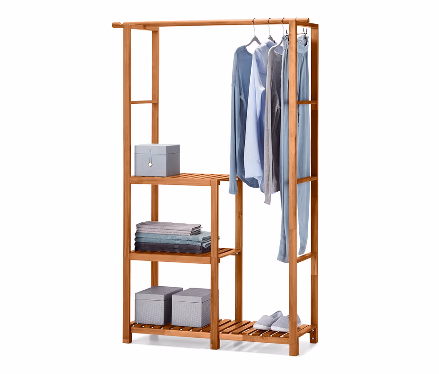 Universal-Massivholz-Ordnungsregal inkl. Kleiderstange