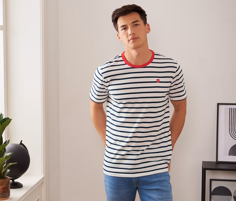 2 T-Shirts mit Rundhalsausschnitt, gestreift