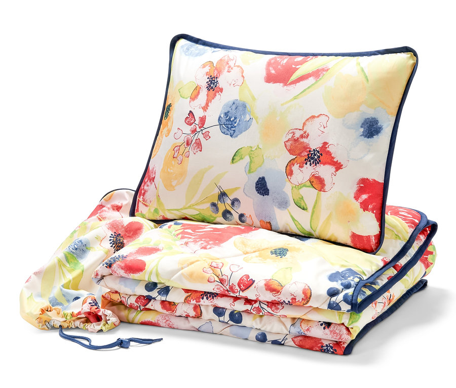 - Mit mehrfarbigem, floralem Aquarellprint – mit oder ohne Bettwäsche verwendbar