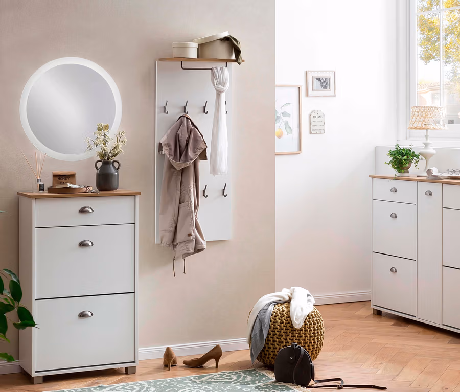 - Schuhschrank der Marit-Serie mit Eiche-Landhaus-Dekor
