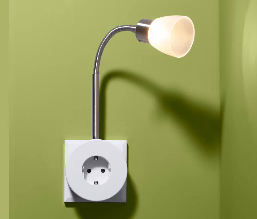 - Mit integrierter Steckdose und flexiblem Leuchtenarm
