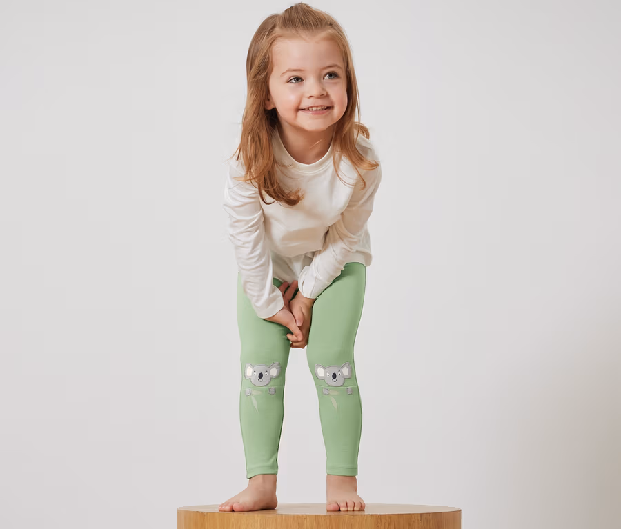 - 2 verschiedene Dessins: 1x mit Koala-Applikation auf dem Knie, 1x Eis-Print